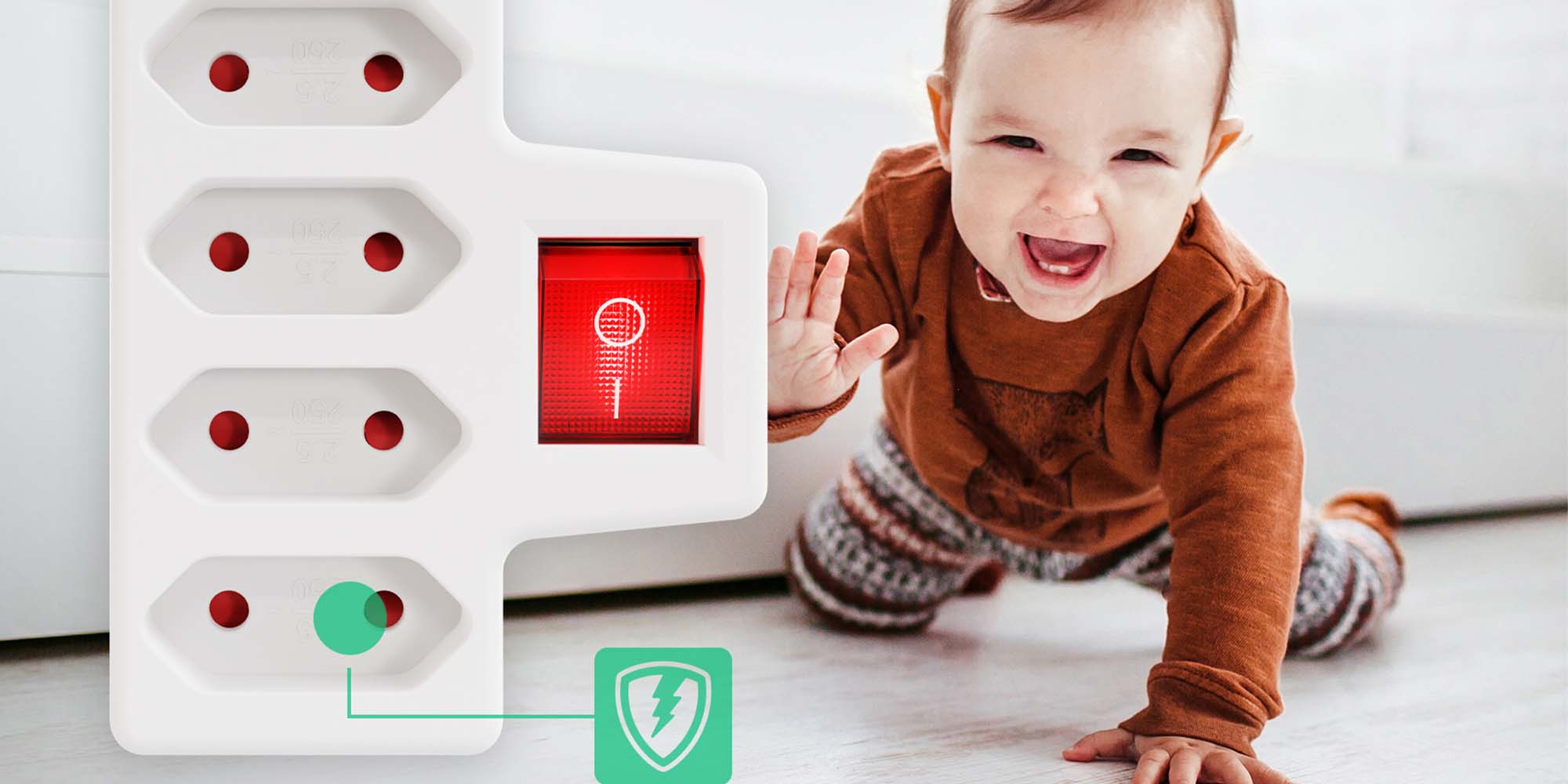 - SICHERHEIT - Steckdose 4fach mit erhöhtem Berührungsschutz - Die integrierten Kunststoffplättchen verschließen die Kontakte der Steckdose