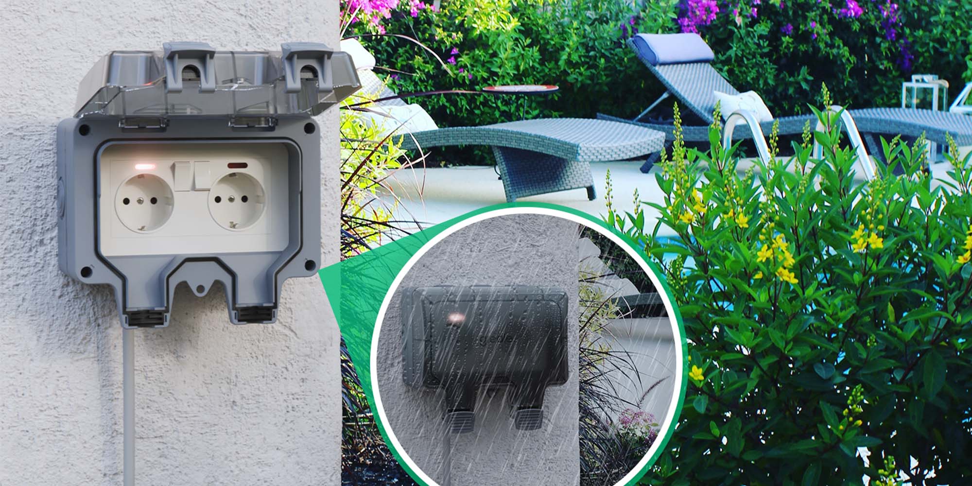 - 2 SCHALTER - Die Schalter der IP66 Steckdose lassen sich separat ein- & ausschalten - Kontrollleuchte zeigt ob die Steckdose für den Außenbereich eingeschalten ist