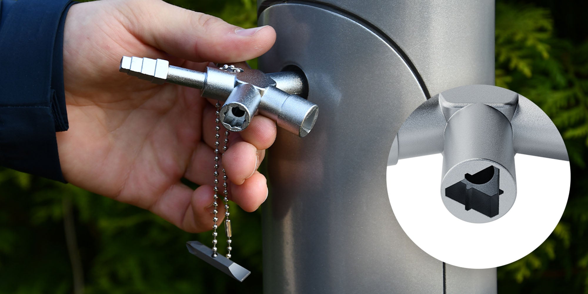 - LIEFERUMFANG: Absina Multifunktionsschlüssel 1005 mit verschiedenen Schlüsseln, Wendebit & Kette