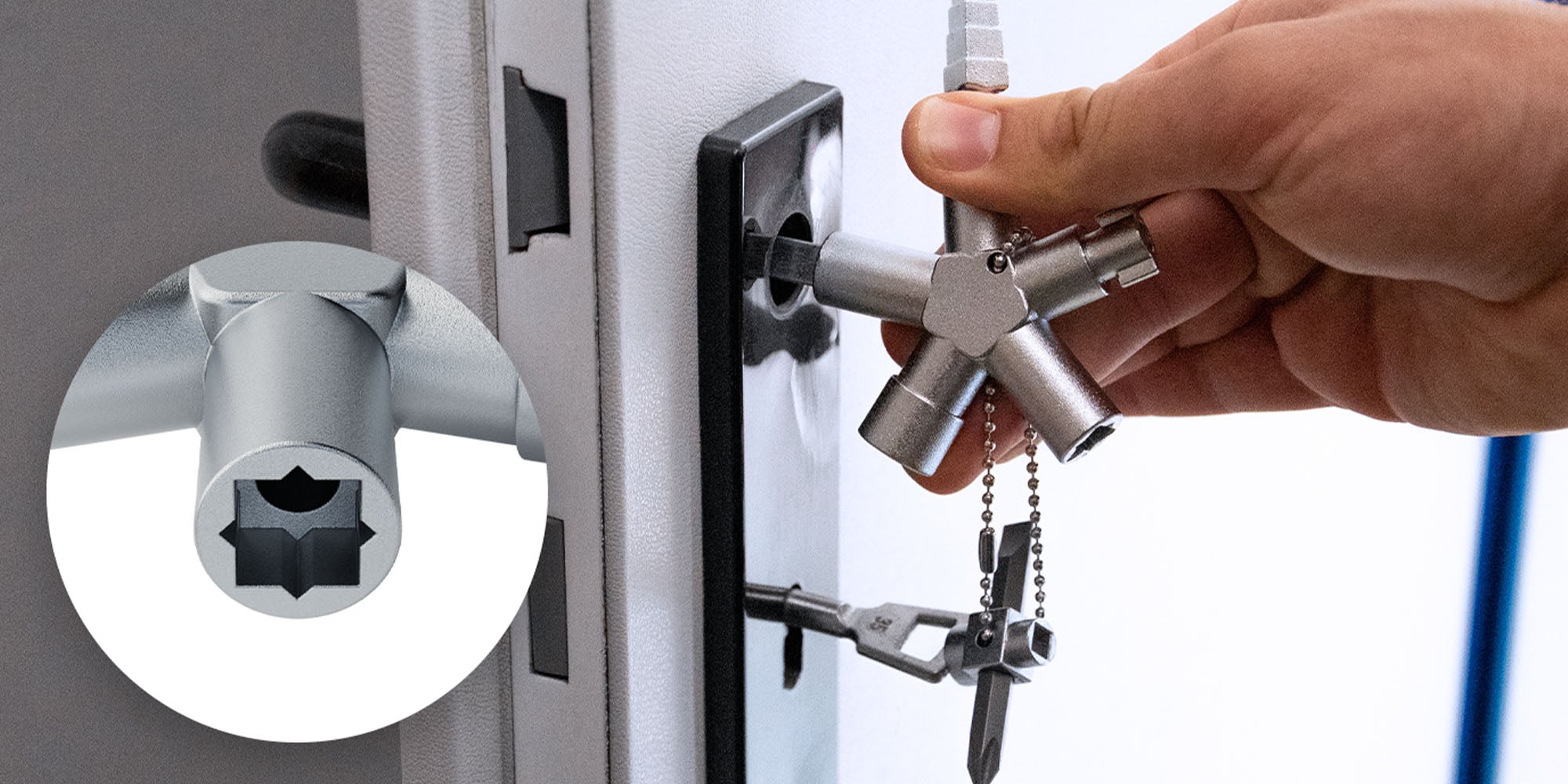 - LIEFERUMFANG: Absina Multifunktionsschlüssel 1006 mit verschiedenen Schlüsseln, Wendebit & Kette