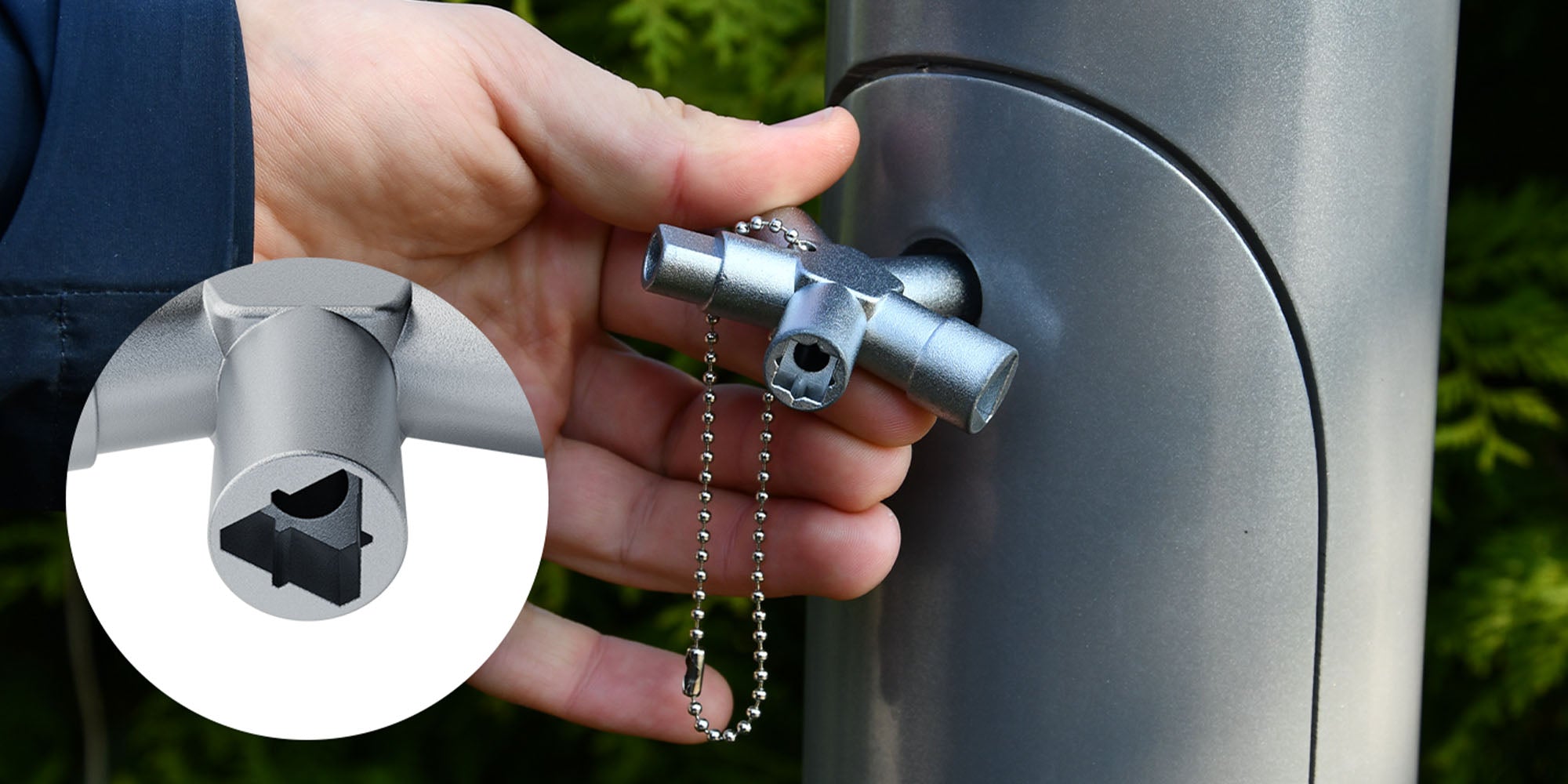 - SCHLÜSSEL: Innenvierkant 6-9 mm / Halbmond / Doppelbart 3-5 mm / Innendreikant 7-11 mm