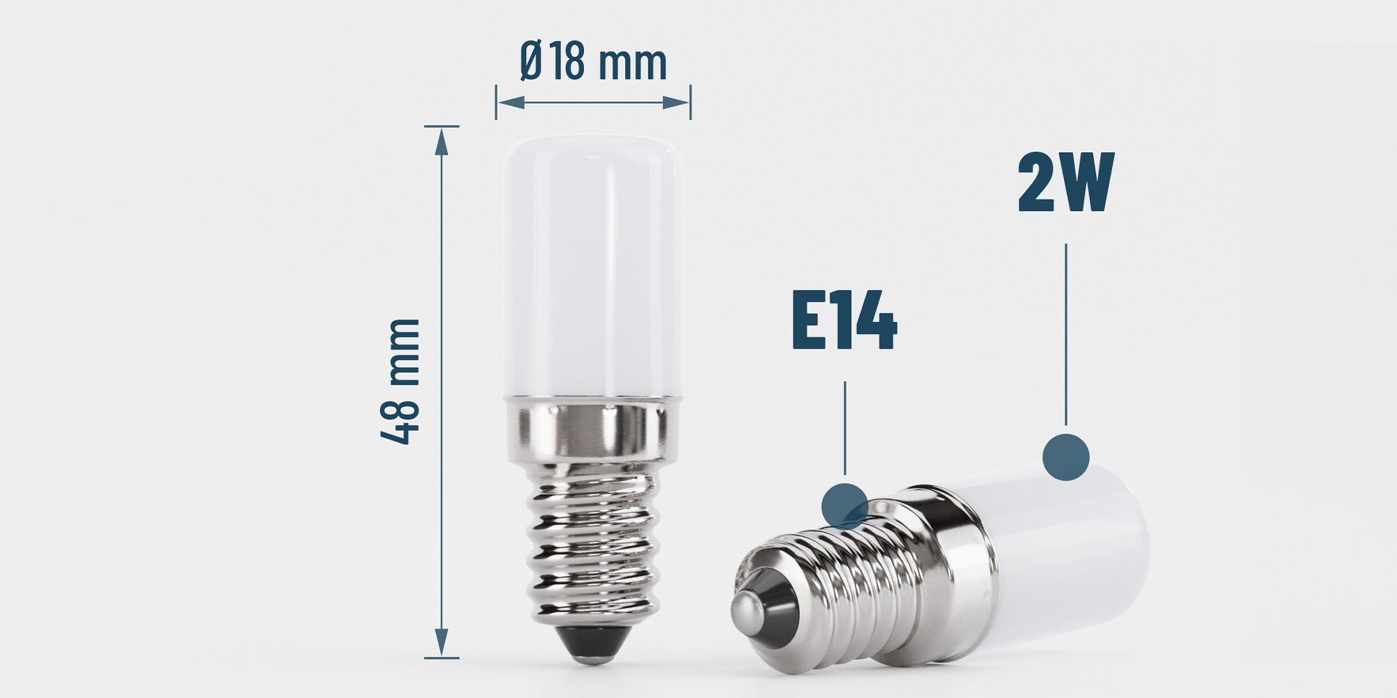 - LEUCHTMITTEL - Das Kühlschrank Licht mit 2 Watt, E14 Sockel und T16 Kapsel Bauform - Abmessungen ø 20 x 50 mm