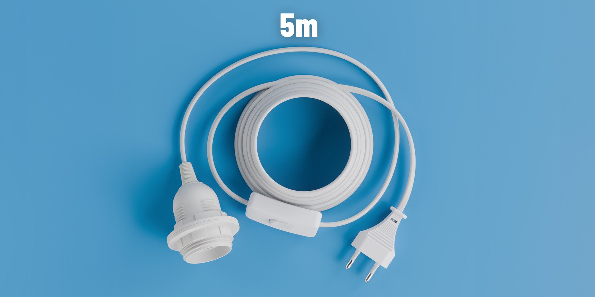 - LIEFERUNG enthält greate E27 Lampenfassung mit Stecker & 5 Meter Kabel in weiß / 60W / 250V / Kabelquerschnitt 0,5mm² / PVC Kabelmaterial