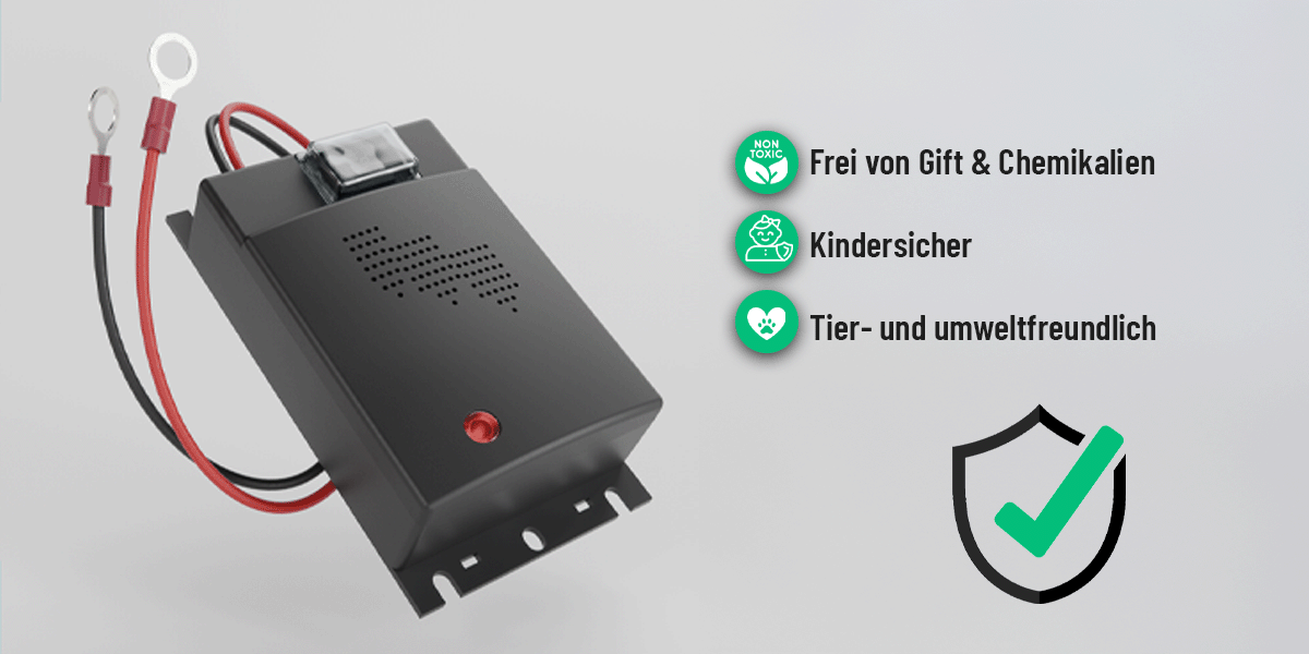 - 12V ANSCHLUSS für Autobatterie - Der Maderschrecker Auto schaltet sich beim Parken automatisch an und pausiert automatisch während der Fahrt
